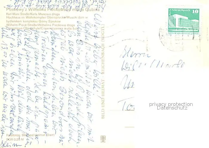 Guben Karl Marx Strasse Hochhaus im Wohnkomples Obersprucke Wilhelm Pieck Strasse Copernicus Oberschule Guben postalisch gelaufen nach 1965 Erhaltung siehe scans [FriedD77] Frierer