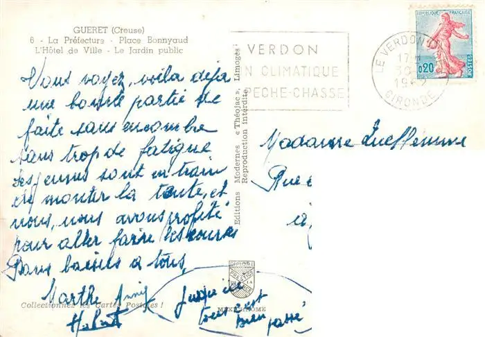 Gueret_23_Creuse La Prefecture Place Bonnyaud l’Hotel de Ville Le Jardin public postalisch gelaufen 1965 Erhaltung siehe scans [WerneD78] WernPID7