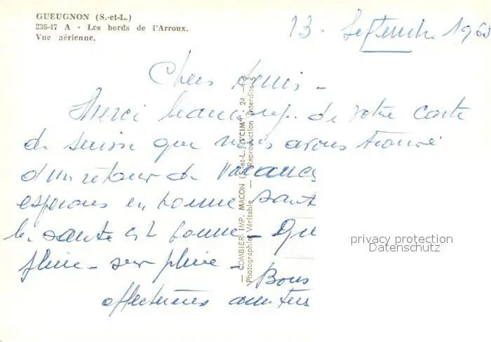Gueugnon Les bords de l'Arroux vue aérienne Gueugnon postalisch nicht gelaufen 1921-1965 Erhaltung siehe scans [FriedD77] Frierer
