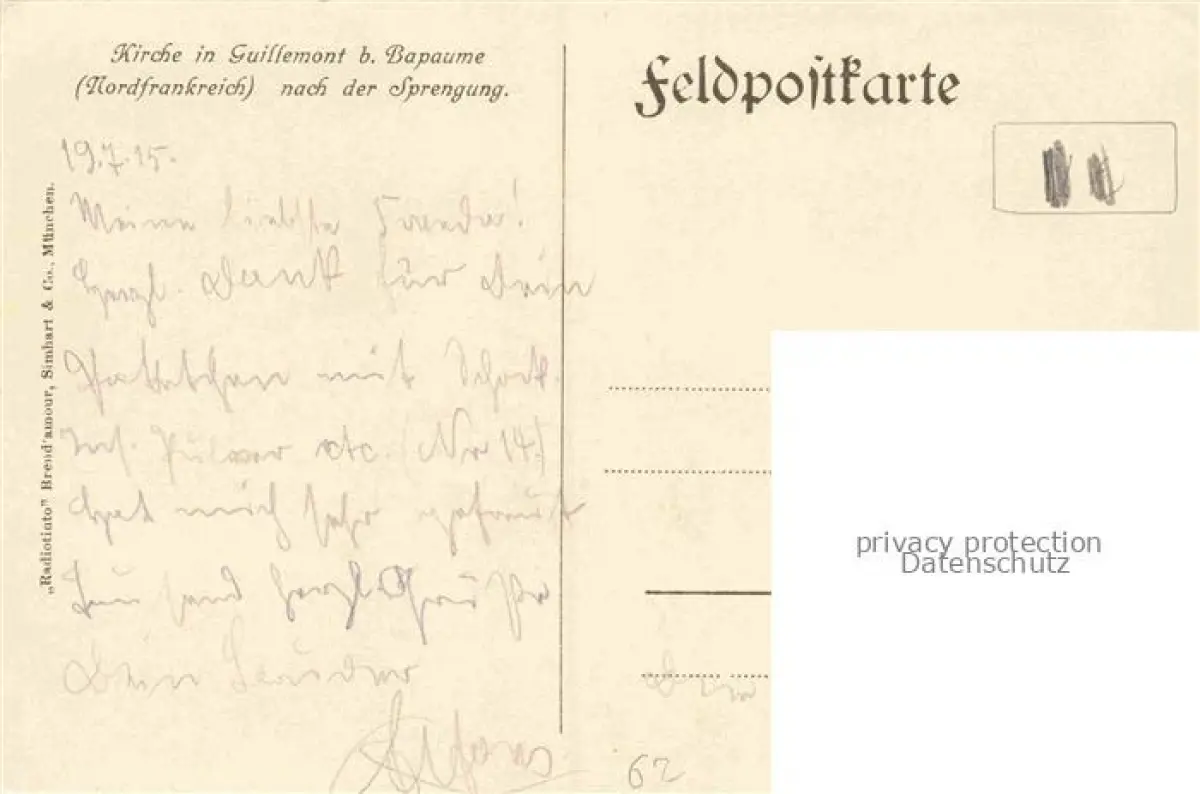 14109219 Guillemont Bapaume ARRAS 62 Pas-de-Calais Kirche nach der Sprengung Ruines Grande Guerre Truemmer 1. Weltkrieg postalisch nicht gelaufen Erhaltung siehe scans [FriedD77] Frie Katcode 11170062162080