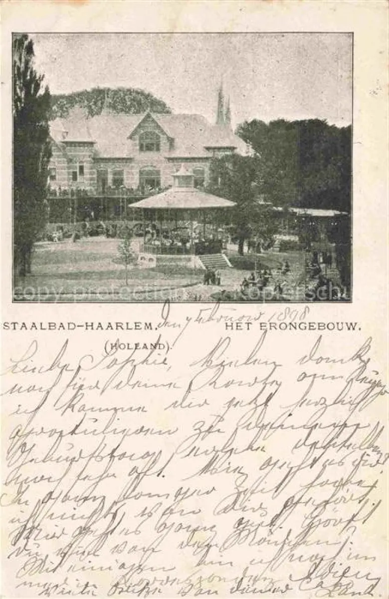 alte Postkarte HAARLEM NL Staalbad Pavillon postalisch gelaufen Erhaltung siehe scans [FriedD77]