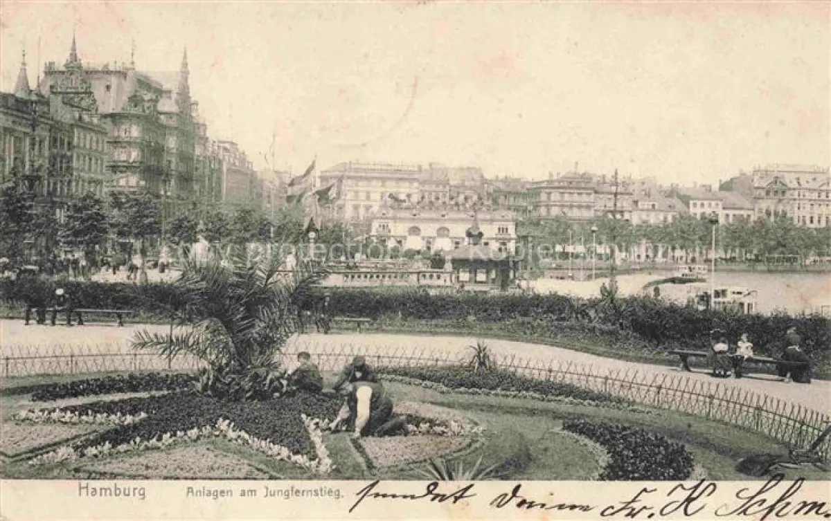 alte Postkarte HAMBURG CITY Anlagen am Jungfernstieg postalisch gelaufen Erhaltung siehe scans [FriedD77]