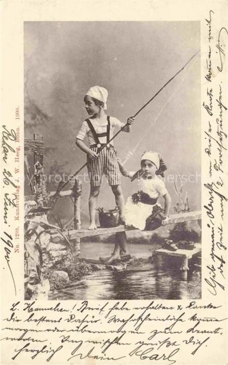 14101506 HEEG Verlag Bonn Kuenstlerverlag Nr. Kinder Fischerei postalisch gelaufen Erhaltung siehe scans [SanaeD93] alte Postkarte Sana Katcode 22080000002200