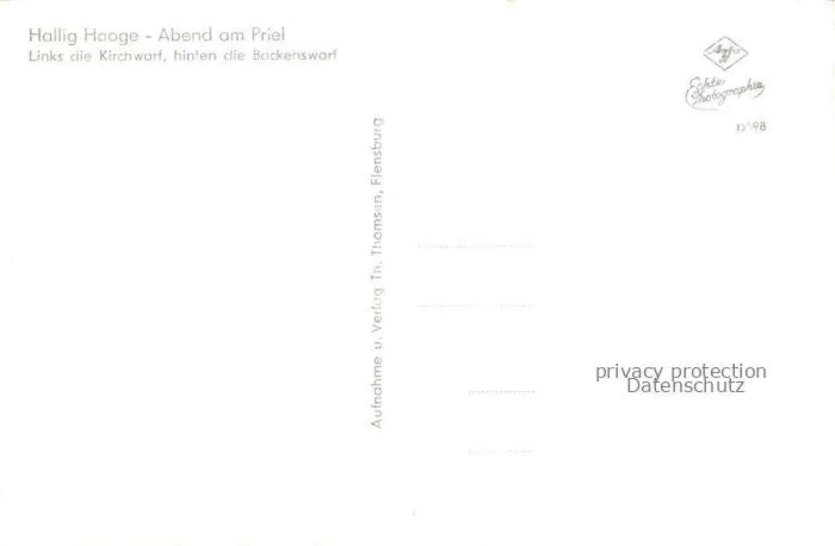 Hallig Hooge Abend am Priel Kirchwarf Backenswarf postalisch nicht gelaufen Erhaltung siehe scans [FriedD77]