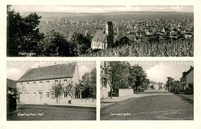 AK / Ansichtskarte Haltingen Panorama mit Kirche Gasthaus Badischer Hof Landstrasse Haltingen