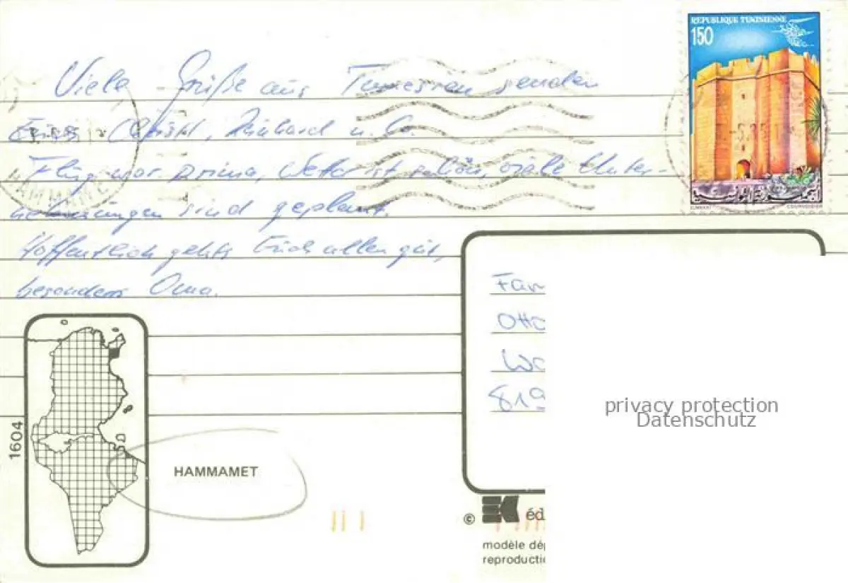 Hammamet Tunesie Strand Festung Fischerboote postalisch gelaufen Erhaltung siehe scans [WerneD78] alte Postkarte Wern Katcode 18520