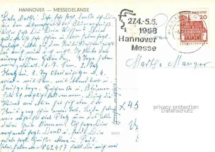 Hannover Messegelaende Hannover postalisch gelaufen 1968 Erhaltung siehe scans [LiesaD40] LiesID40