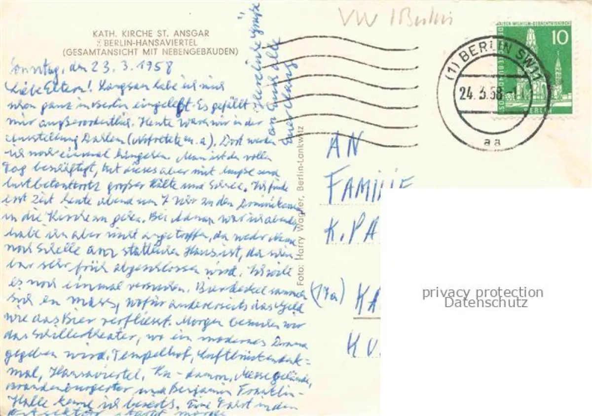 alte Postkarte Hansaviertel BERLIN Kath Kirche St Ansgar postalisch gelaufen Erhaltung siehe scans [WerneD78]