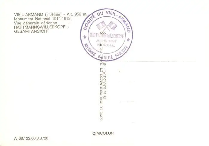 Hartmannswillerkopf Monument National Vue generale aerienne Hartmannswillerkopf postalisch nicht gelaufen nach 1965 Erhaltung siehe scans [WerneD78] WernPID7