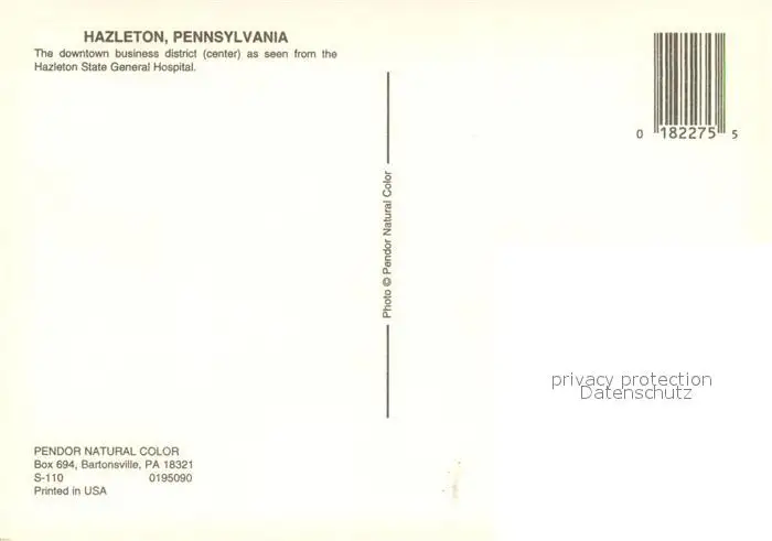 Hazleton_Pennsylvania The downtown business district as seen from the Hazleton State General Hospital Hazleton_Pennsylvania postalisch nicht gelaufen nach 1965 Erhaltung siehe scans [WerneD78] WernPID7