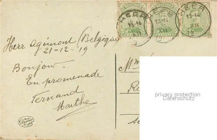 Heer-Agimont Passage d'eau Heer-Agimont postalisch gelaufen 1919 Erhaltung siehe scans [FriedD77] Frierer