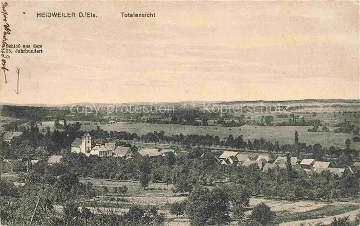 Heidweiler_Heidwiller_Altkirch_68_Haut-Rhin Totalansicht postalisch gelaufen 1916 Erhaltung siehe scans [FriedD77] Frierer