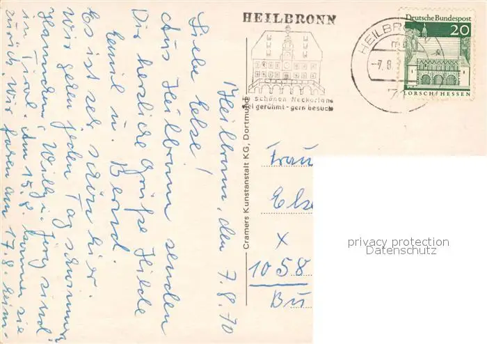Heilbronn_Neckar Harmonie Kilianskirche Schwimmbad Rathaus Stadtgarten Heilbronn Neckar postalisch gelaufen 1970 Erhaltung siehe scans [FriedD77] Frierer