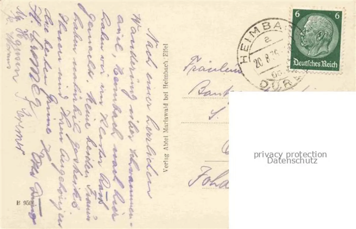 alte Postkarte Heimbach Eifel Rur Dueren NRW Abtei Mariawald postalisch gelaufen Erhaltung siehe scans [FriedD77]