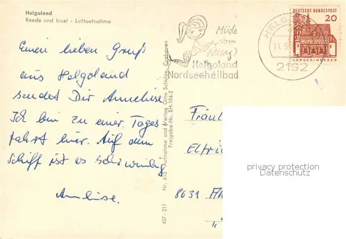 Helgoland Schiffe auf Reede und Insel Fliegeraufnahme Helgoland postalisch gelaufen nach 1965 Erhaltung siehe scans [WerneD78] WernPID7