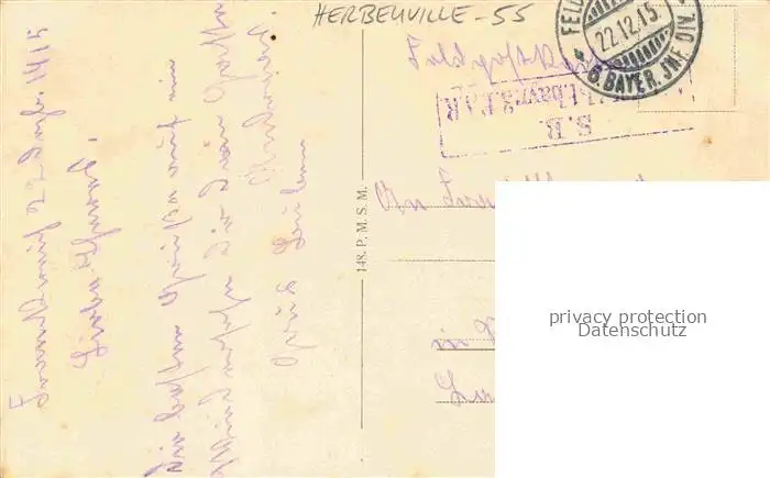 Herbeuville_Verdun_55_Meuse Totalansicht postalisch gelaufen 1915 Feldpost - Stempel Erhaltung siehe scans [FriedD77] Feldpost - Stempel Frierer
