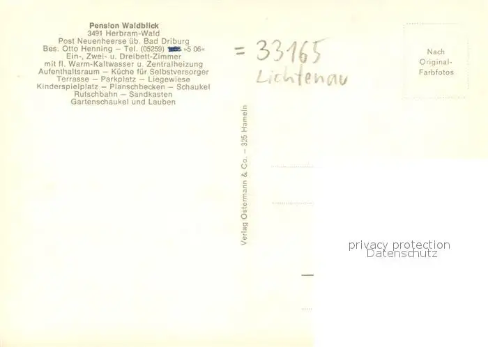 Herbram Pension Waldblick Gaststube Pool Herbram postalisch nicht gelaufen nach 1965 Erhaltung siehe scans [WerneD78] WernPID7