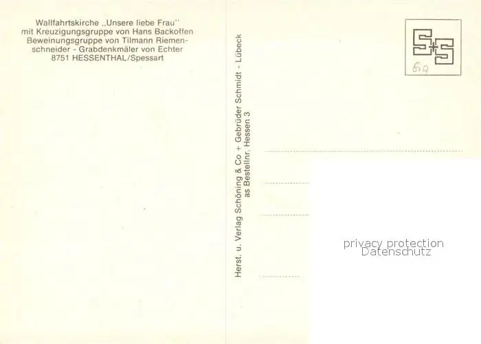 Hessenthal_Spessart Wallfahrtskirche Unsere liebe Frau Hessenthal Spessart postalisch nicht gelaufen nach 1965 Erhaltung siehe scans [KathaD81] Kathoren