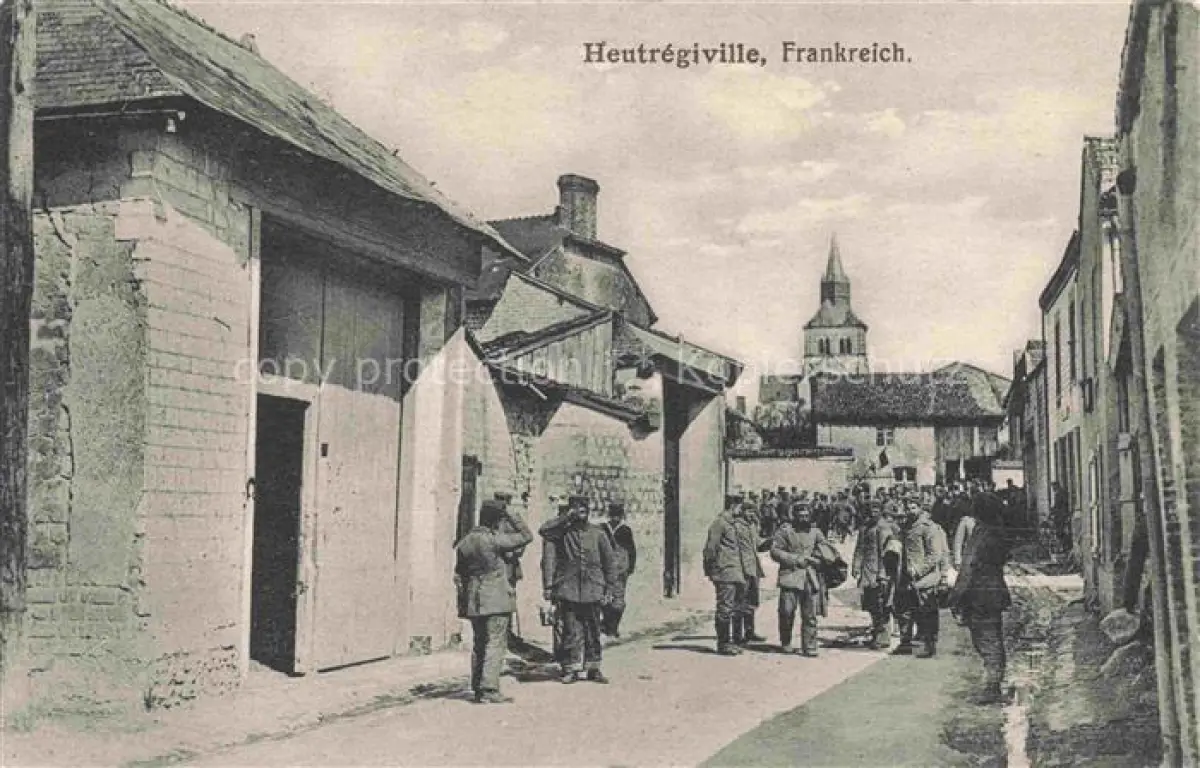 Heutregiville REIMS 51 Marne Ortszentrum Soldaten Blick zur Kirche postalisch nicht gelaufen Erhaltung siehe scans [FriedD77]