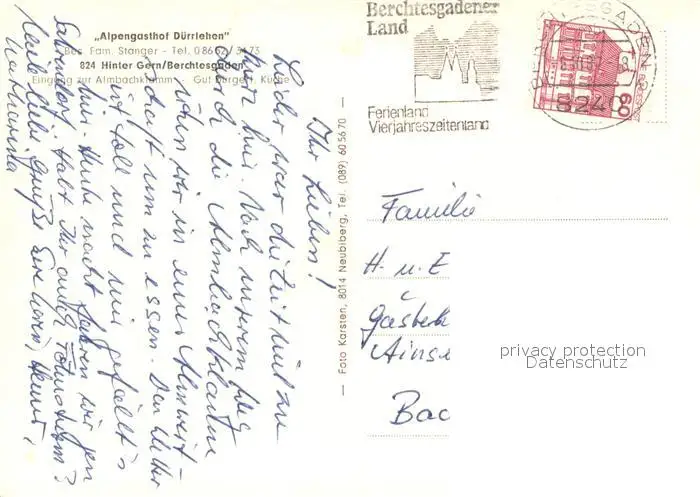 Hintergern Alpengasthof Duerrlehen Panorama Hintergern postalisch nicht gelaufen nach 1965 Erhaltung siehe scans [WerneD78] WernPID7