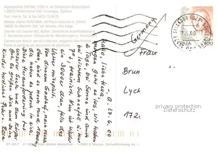 Hintermartell Alpengasthof Enzian Panorama Hintermartell postalisch gelaufen 2000 Erhaltung siehe scans [WerneD78] WernPID7