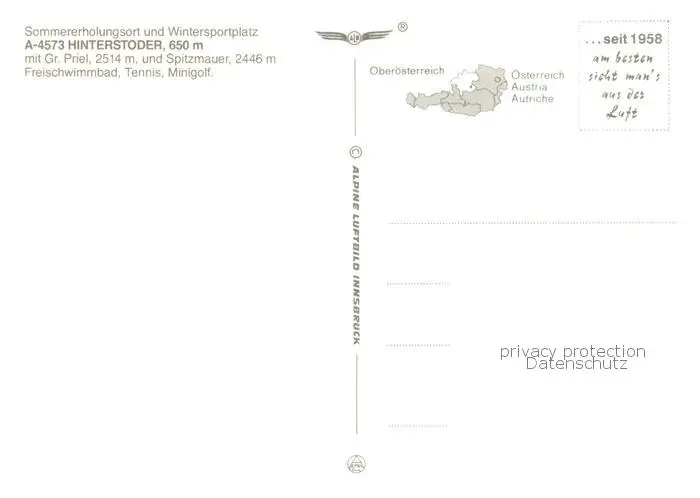 Hinterstoder Fliegeraufnahme mit gr Priel und Spitzmauer Freischwimmbad Tennis Minigolf Hinterstoder postalisch nicht gelaufen nach 1965 Erhaltung siehe scans [WerneD78] WernPID7