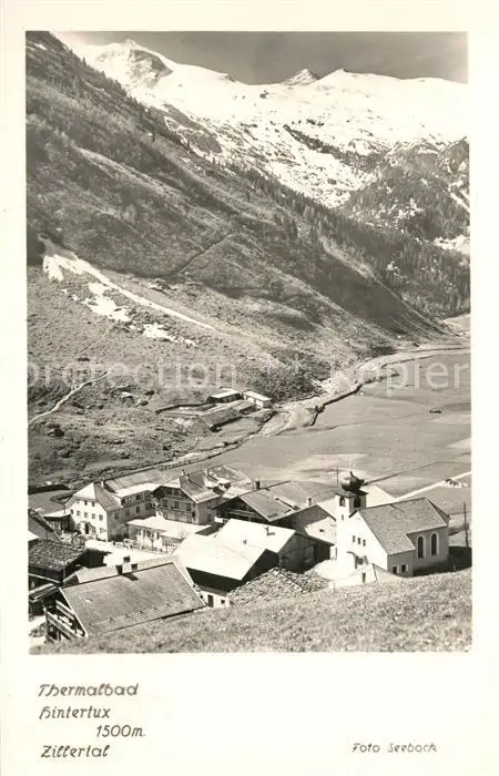 Hintertux_Zillertal Kirchenpartie Thermalbad Hintertux_Zillertal postalisch gelaufen 1957 Erhaltung siehe scans [LiesaD40] LiesID40