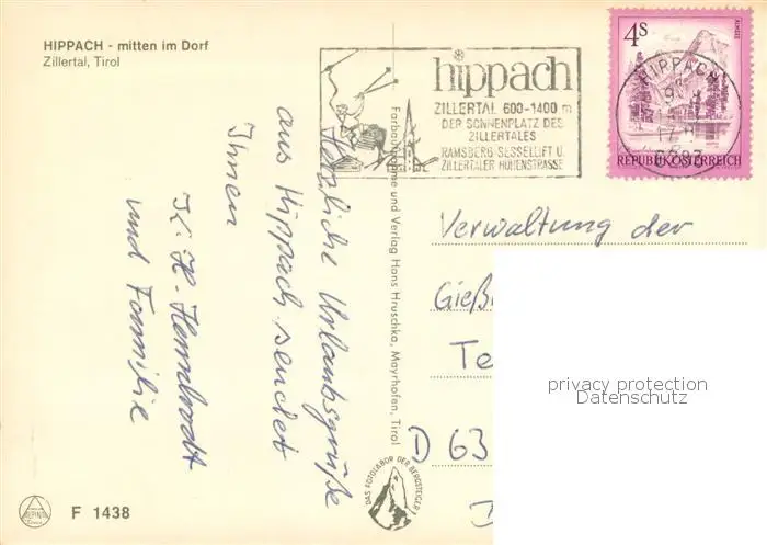 Hippach_Tirol_AT Dorfmitte postalisch gelaufen nach 1965 Erhaltung siehe scans [WerneD78] WernPID7