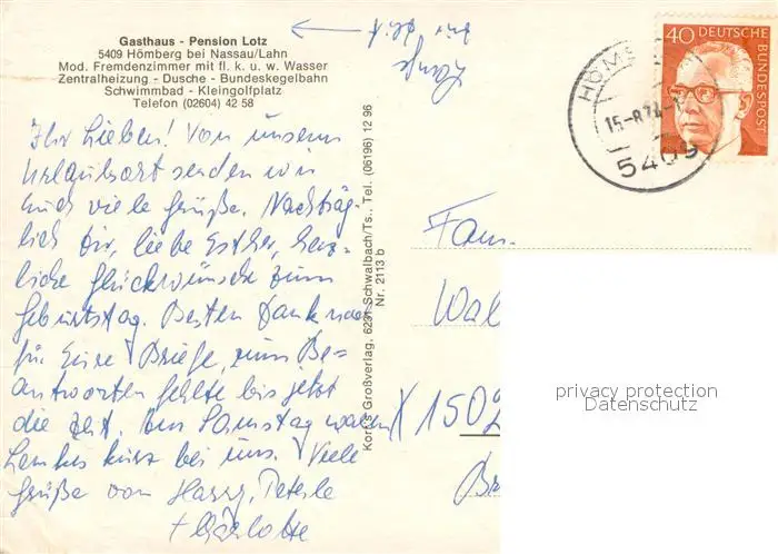 Hoemberg Landschaftspanorama Lahnhoehe Nassau Pension Kegelbahn Pavillon Hoemberg postalisch gelaufen 1974 Erhaltung siehe scans [FriedD77] Frierer