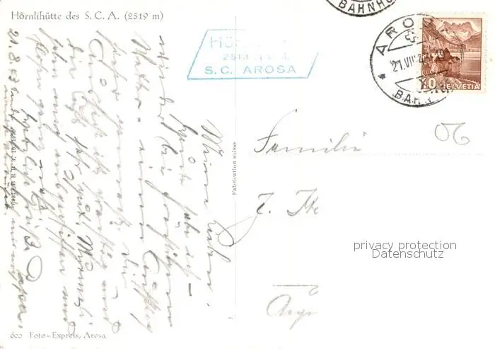 Hoernlihuette_2519m_GR postalisch gelaufen 1943 Erhaltung siehe scans [LiesaD40] LiesID40
