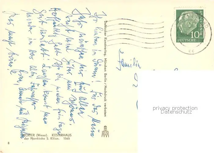 Hoexter_Weser Kuesterhaus der Pfarrkirche St Kilian Hoexter Weser postalisch gelaufen 1921-1965 Erhaltung siehe scans [WerneD78] WernPID7