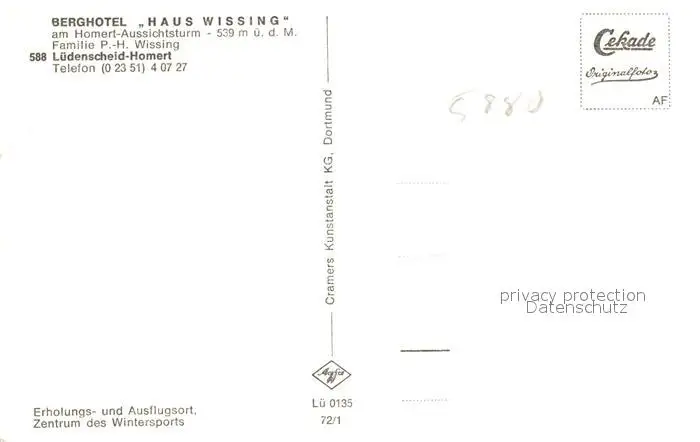 Homert Berghotel Haus Wissig Aussichtsturm Landschaftspanorama Homert postalisch nicht gelaufen 1972 Erhaltung siehe scans [FriedD77] Frierer