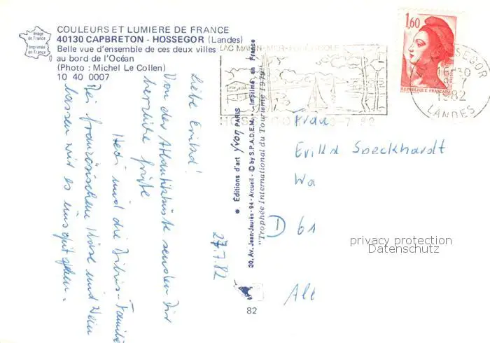 Hossegor_Soorts_Landes Belle vue d’ensemble aerienne de ces deux villes au bord de l'Ocean Hossegor_Soorts_Landes postalisch gelaufen 1982 Erhaltung siehe scans [FriedD77] Frierer