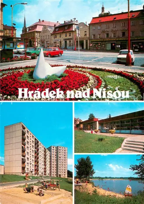 AK / Ansichtskarte Hradek_nad_Nisou_Grottau Teilansichten See Stadt Wohnblock Hradek_nad_Nisou_Grottau