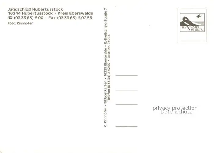 Hubertusstock_Eichhorst Jagdschloss Hubertusstock_Eichhorst postalisch nicht gelaufen nach 1965 Erhaltung siehe scans [FriedD77] Frierer