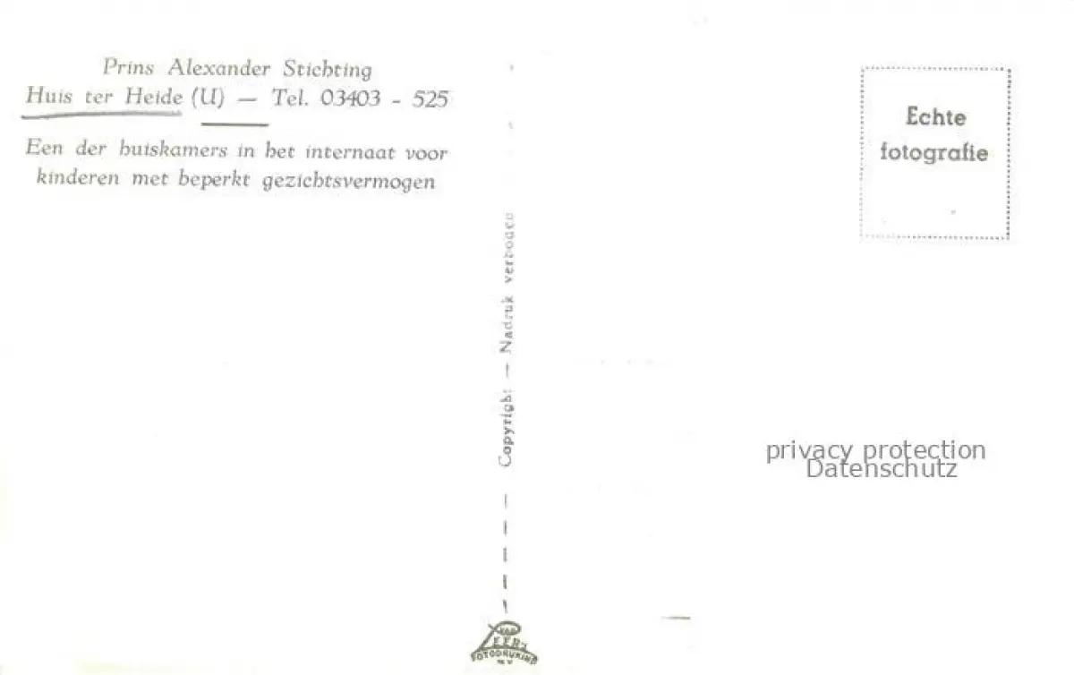 Huis ter Heide Zeist Utrecht NL Een der buiskamers in het internaat voor kinderen met beperkt gezichtsvermogen postalisch nicht gelaufen Erhaltung siehe scans [WerneD78] Wern Katcode 11371300