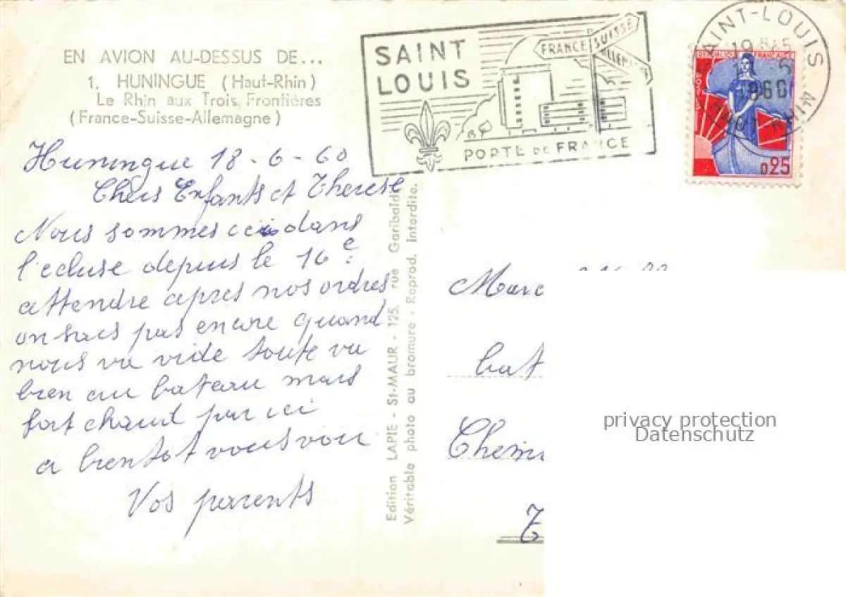 14120017 Huningue Hueningen Mulhouse 68 Haut-Rhin Le Rhin aux Trois Frontières France Suisse Allemagne vue aérienne postalisch gelaufen Fliegeraufnahme Erhaltung siehe scans [FriedD77] Fliegeraufnahme carte postale Frie Katcode 11170068468149