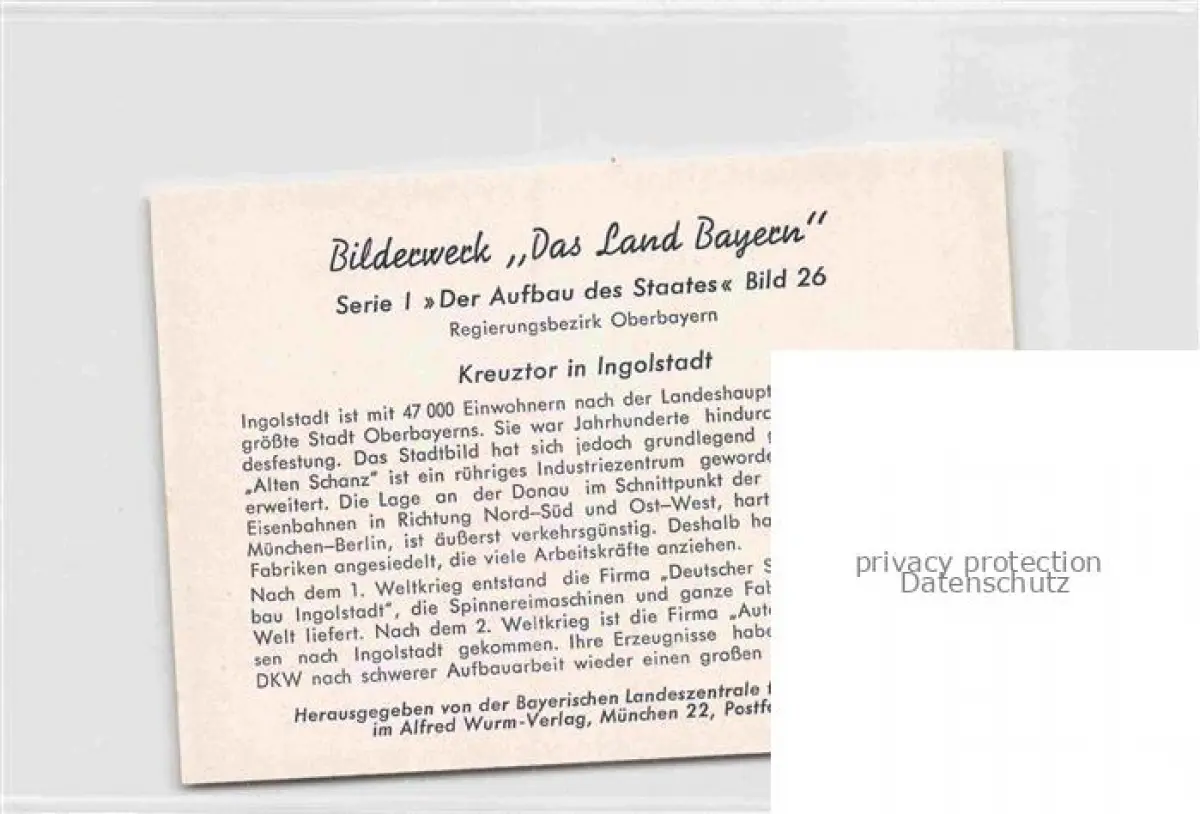 INGOLSTADT CITY Kreuztor postalisch nicht gelaufen Werbekarte (keine Postkarte) Erhaltung siehe scans [WerneD78] Werbekarte (keine Postkarte) Wern Katcode 11110009161000