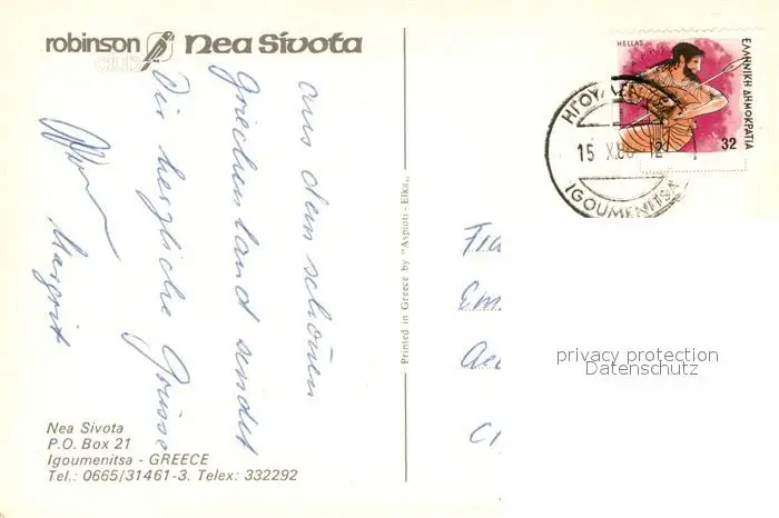 Igoumenitsa Robinson Club Nea Sivota Igoumenitsa postalisch gelaufen 1986 Erhaltung siehe scans [WerneD78] WernPID7