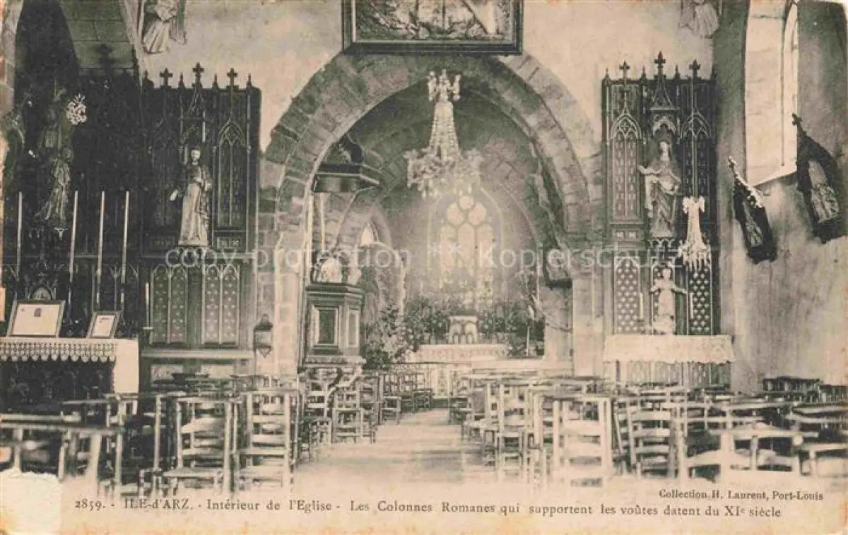 AK / Ansichtskarte Ile-d Arz Vannes 56 Morbihan Interieur de l'Eglise Les Colonnes Romanes qui supportent les voutes datent