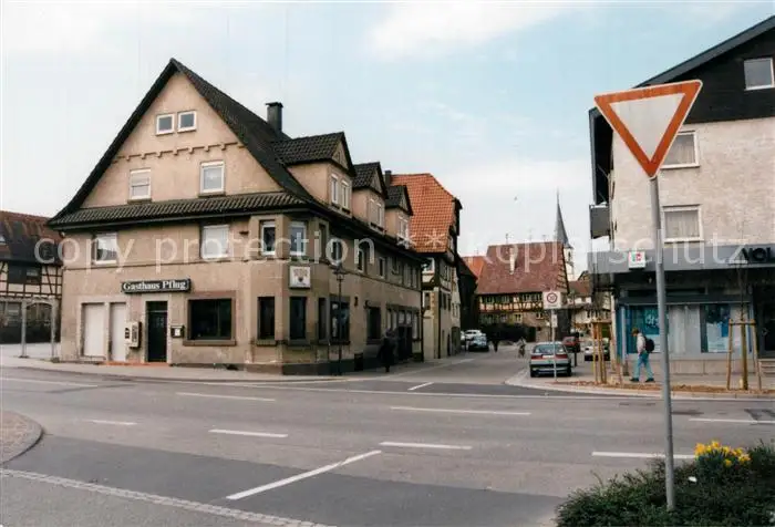Illingen Illingen Kategorie Alte Ansichtskarten Postkarten bx50359 Illingen_Illingen Hauptstrasse mit Gasthaus Pflug Illingen Illingen postalisch nicht gelaufen nach 1965 Erhaltung siehe scans [FriedD77]