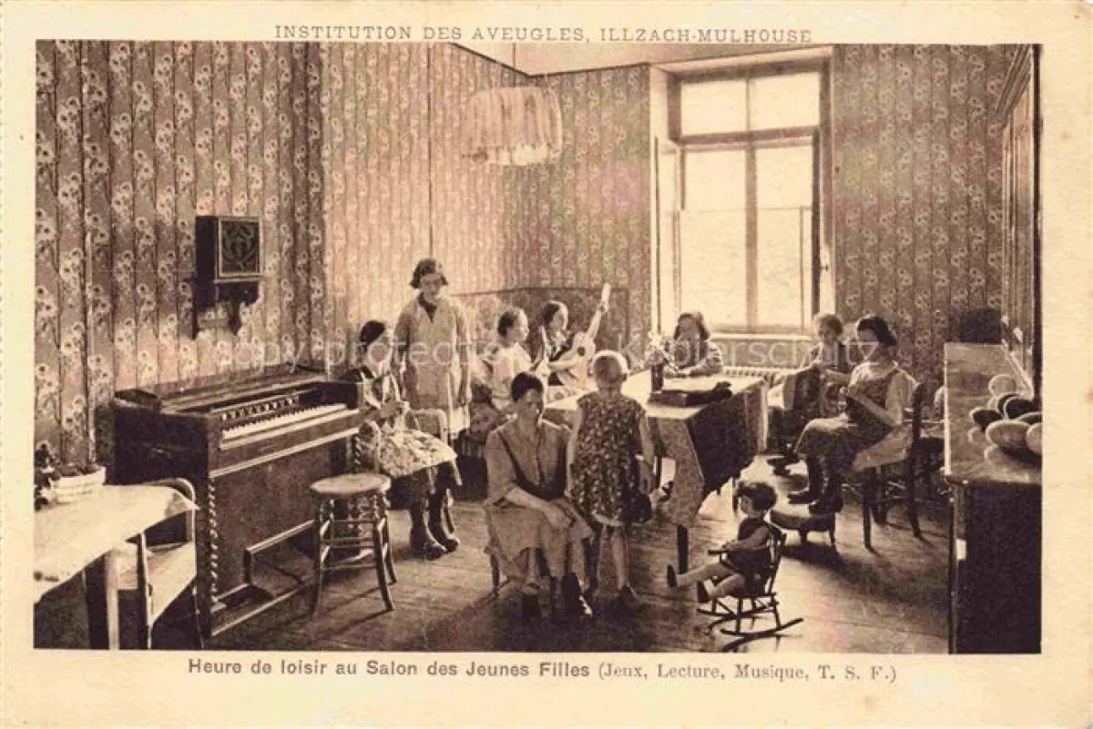 Illzach MULHOUSE 68 Haut-Rhin Institution des Aveugles Heure de loisir au Salon des Jeunes Filles postalisch nicht gelaufen Erhaltung siehe scans [FriedD77]