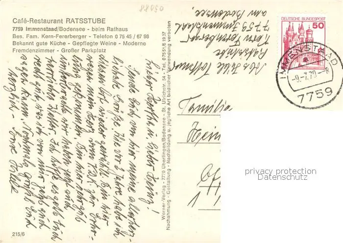 Immenstaad_Bodensee Cafe Kern Ratsstube Immenstaad_Bodensee postalisch gelaufen 1979 Erhaltung siehe scans [WerneD78] WernPID7