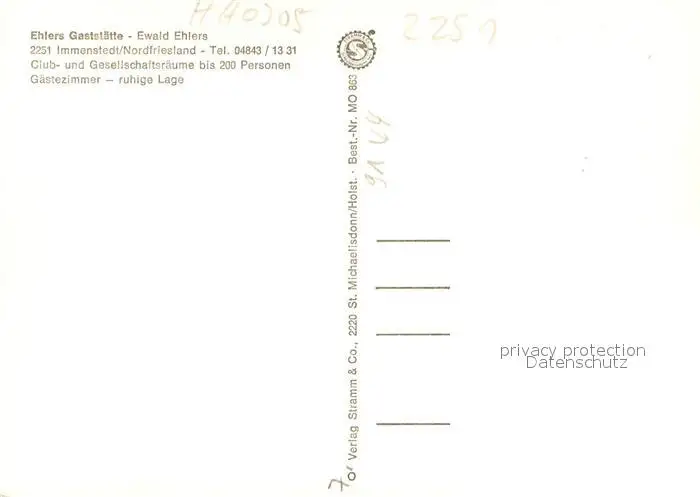 Immenstedt_Nordfriesland Ehlers Gaststaette Festsaal Gesellschaftsraum Immenstedt_Nordfriesland postalisch nicht gelaufen nach 1965 Erhaltung siehe scans [FriedD77] Frierer