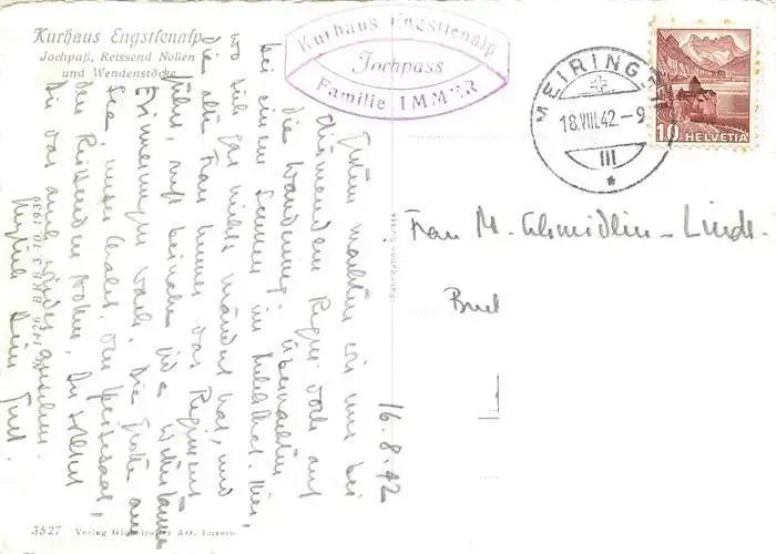 Innertkirchen_BE Kurhaus Engstlenalp Jochpass Berner Alpen postalisch gelaufen 1942 Erhaltung siehe scans [FriedD77] Frierer