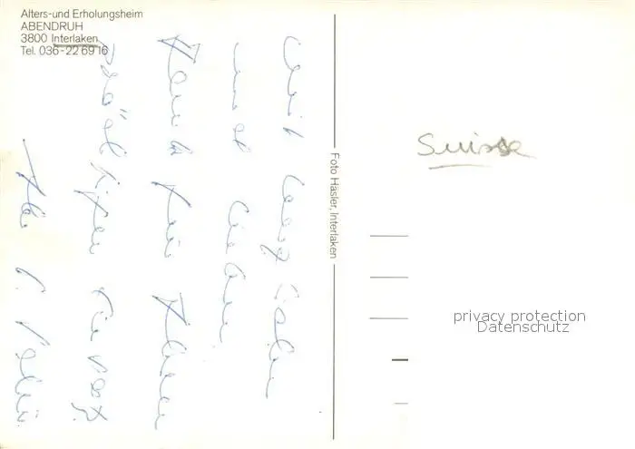 Interlaken_BE Alters- und Erholungsheim Abendruh Interlaken_BE postalisch nicht gelaufen nach 1965 Erhaltung siehe scans [FriedD77] Frierer