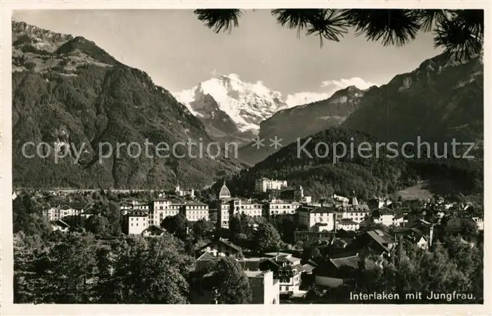 Interlaken_BE Gesamtansicht mit Blick zur Jungfrau Berner Alpen Interlaken_BE postalisch gelaufen 1944 Erhaltung siehe scans [FriedD77] Frierer