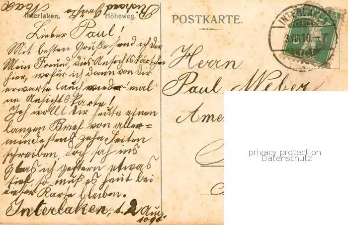Interlaken_BE Hoeheweg Interlaken_BE postalisch gelaufen 1910 Erhaltung siehe scans [WerneD78] WernPID7