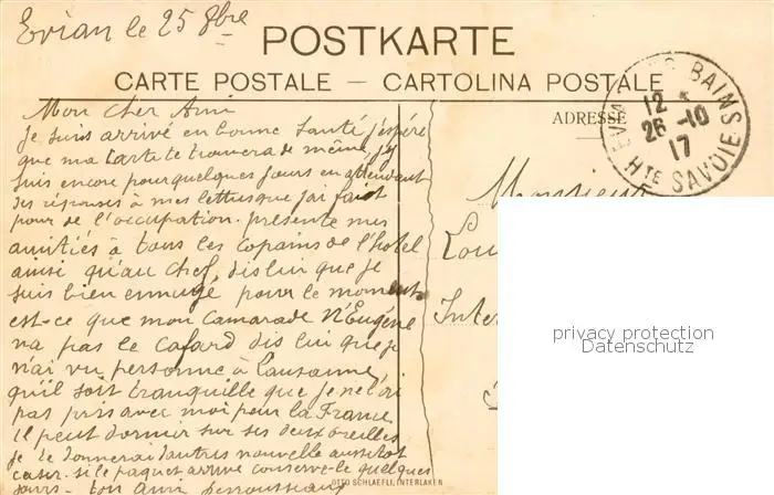Interlaken_BE Union-Hotel Pension-Reber Aussenansicht Interlaken_BE postalisch gelaufen 1917 Erhaltung siehe scans [LiesaD40] LiesID40