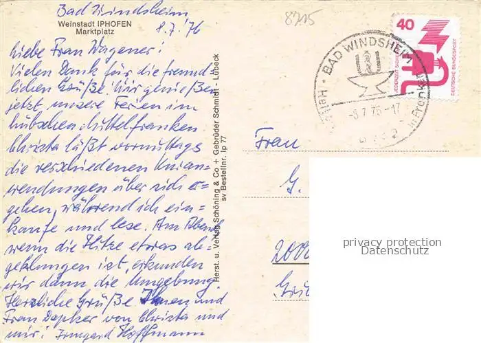 alte Postkarte Iphofen Marktplatz Rathaus Kirche postalisch gelaufen Erhaltung siehe scans [WerneD78]